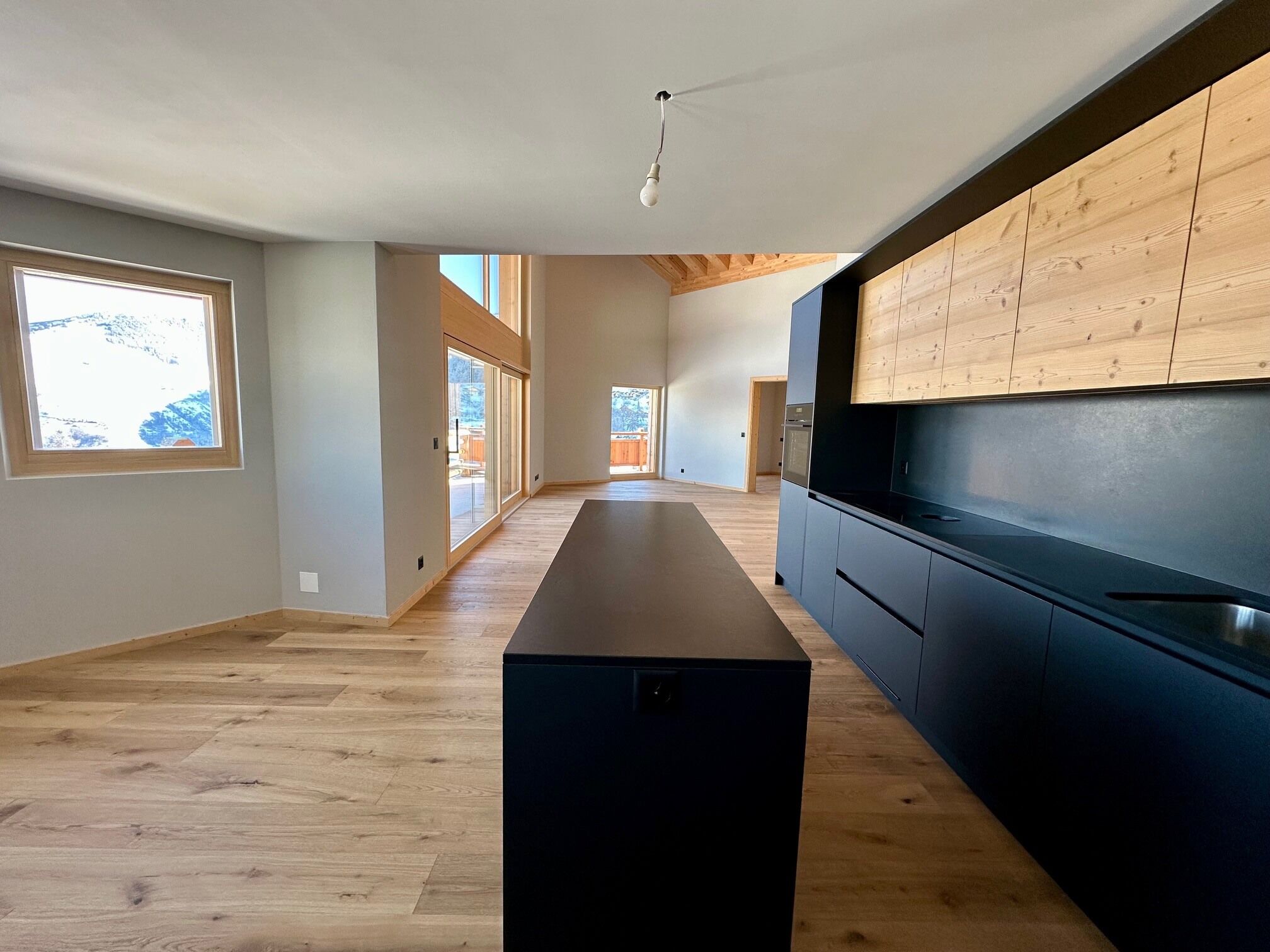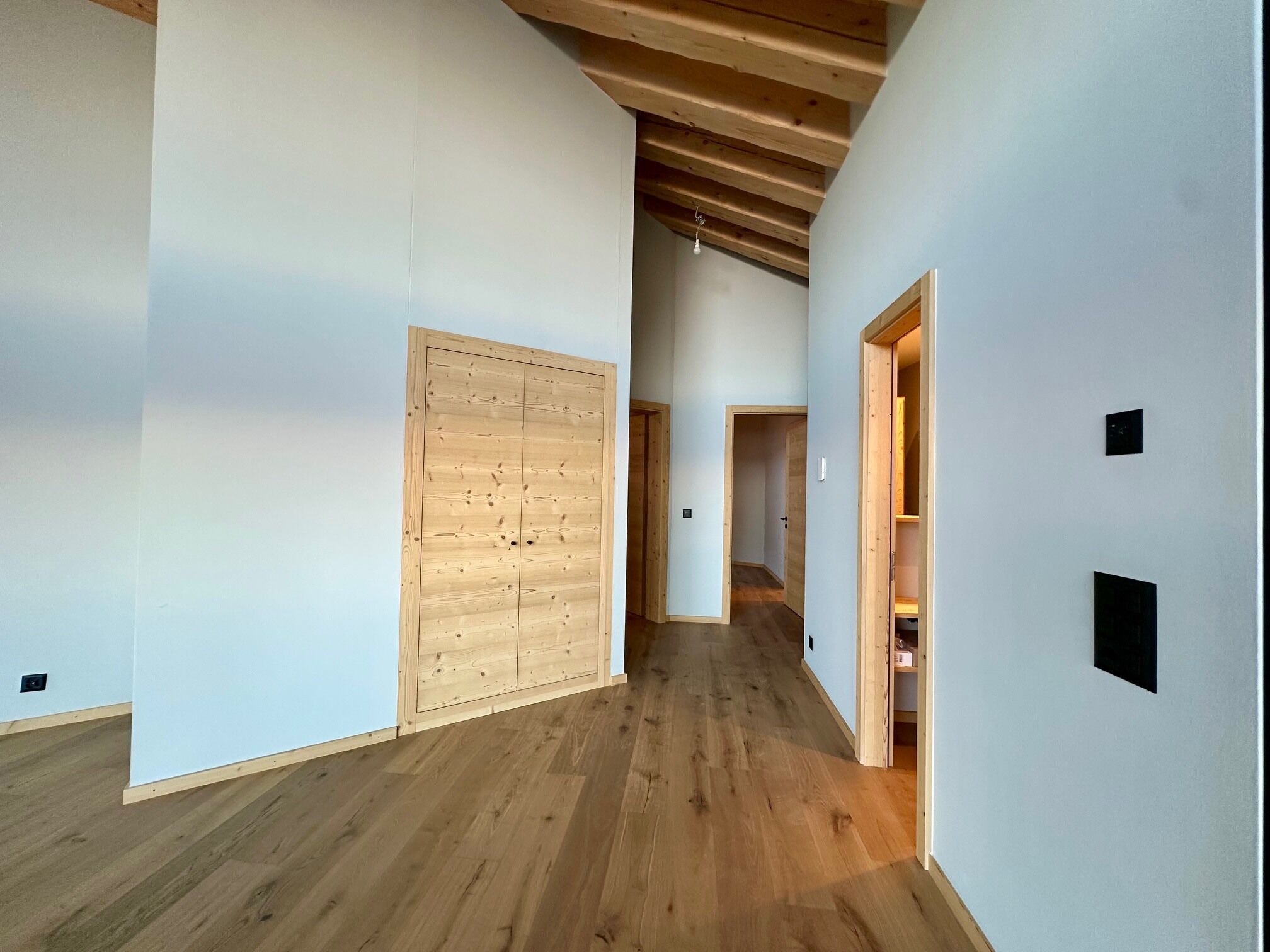 Il design sobrio e moderno di questo appartamento vi conquisterà, grazie soprattutto alle grandi finestre a golfo che conferiscono all'ambiente una luce eccezionale. Il legno, particolarmente presente nell'appartamento, con la sua magnifica struttura del tetto, conferisce un'atmosfera calda e autentica, mentre i materiali di alta qualità garantiscono il comfort visivo e termico.